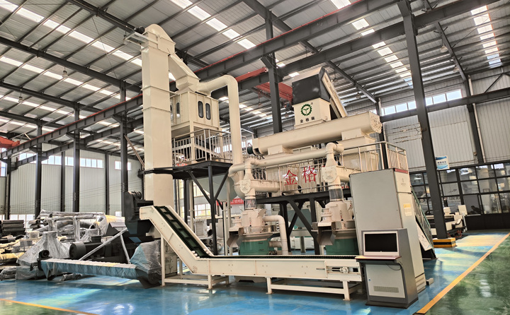 顆粒制粒系統(tǒng):核心設(shè)備是木屑顆粒機(jī),常見的有環(huán)模顆粒機(jī),其壓縮比可根據(jù)原料定制,能使出料均勻,保證顆粒成型質(zhì)量。